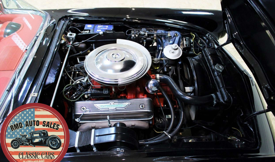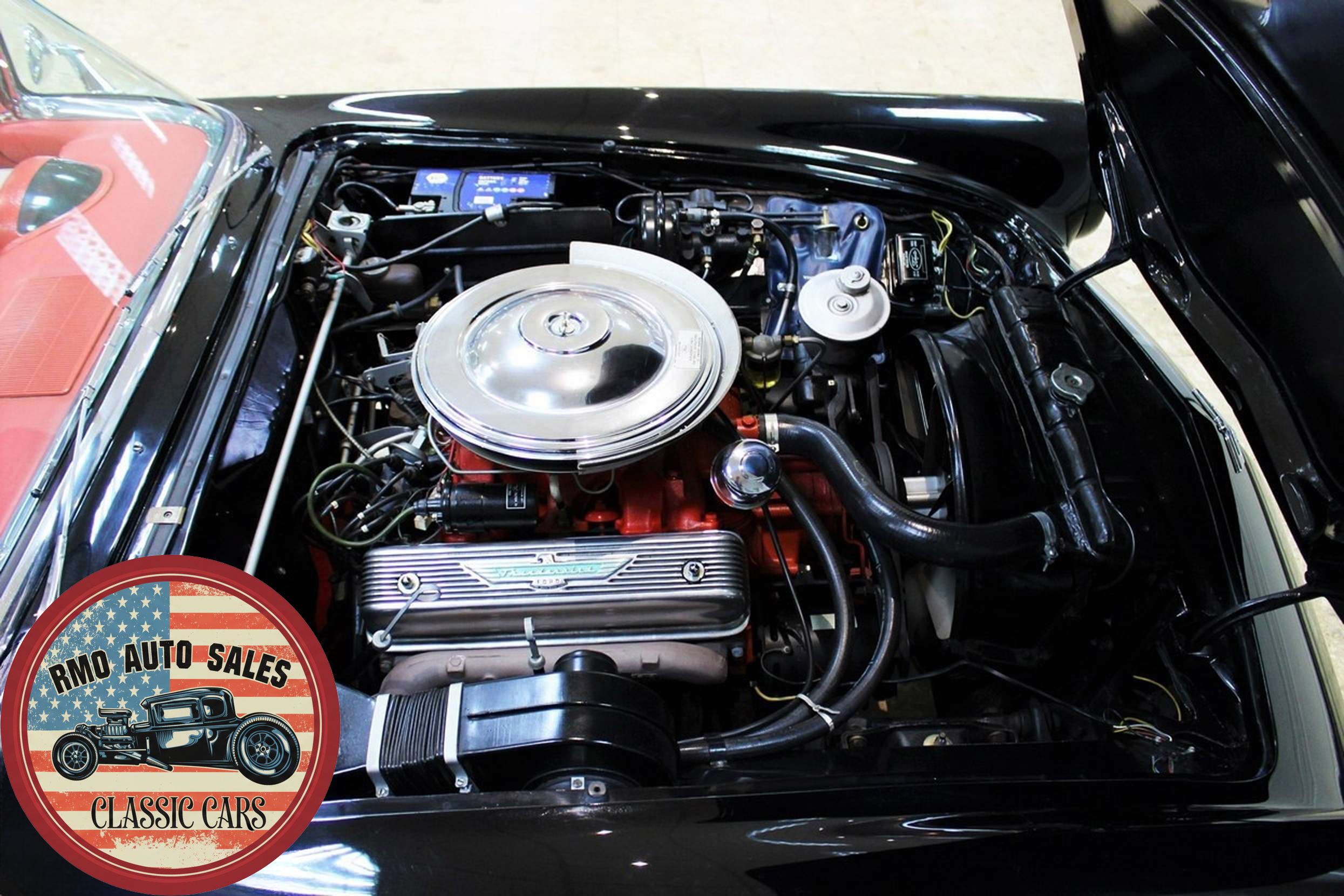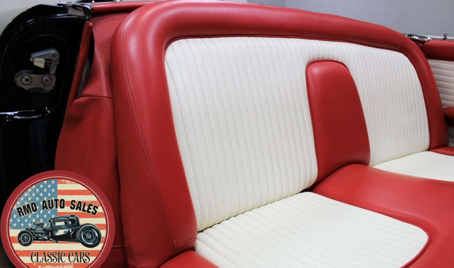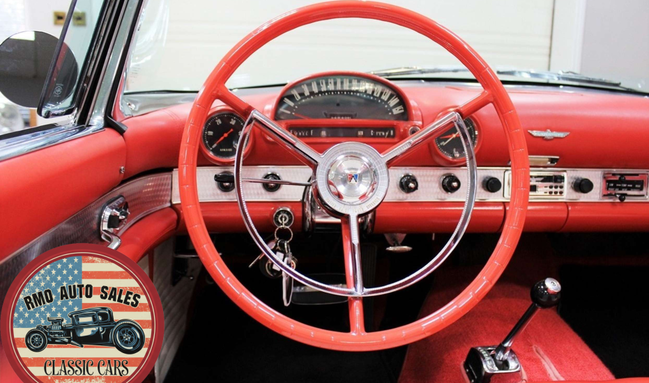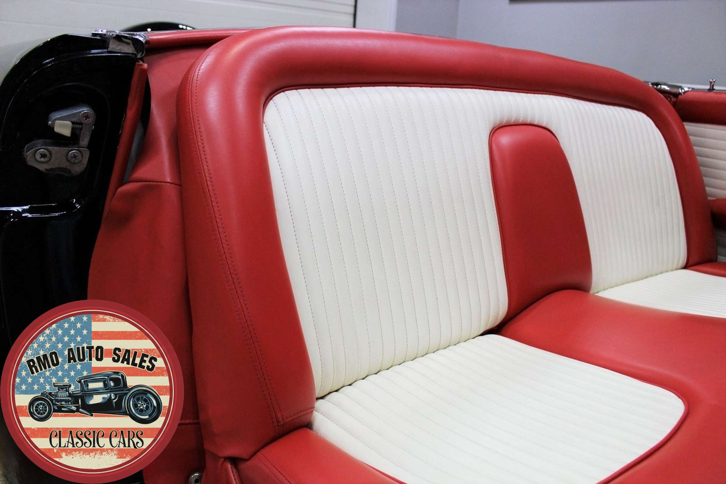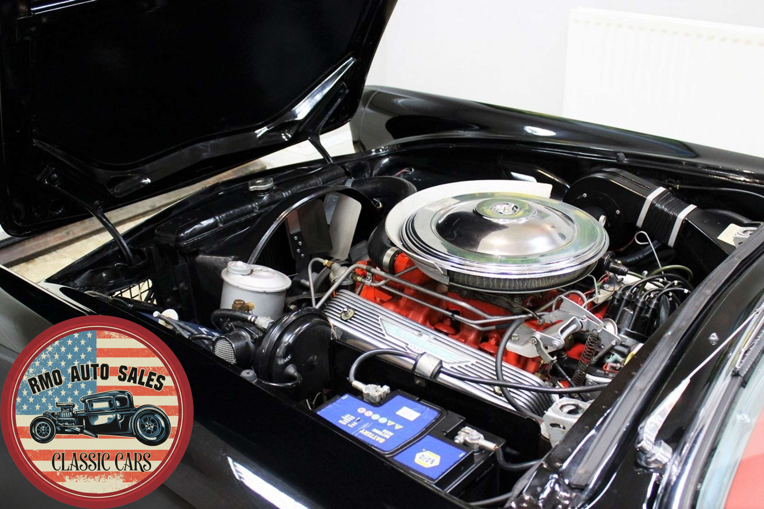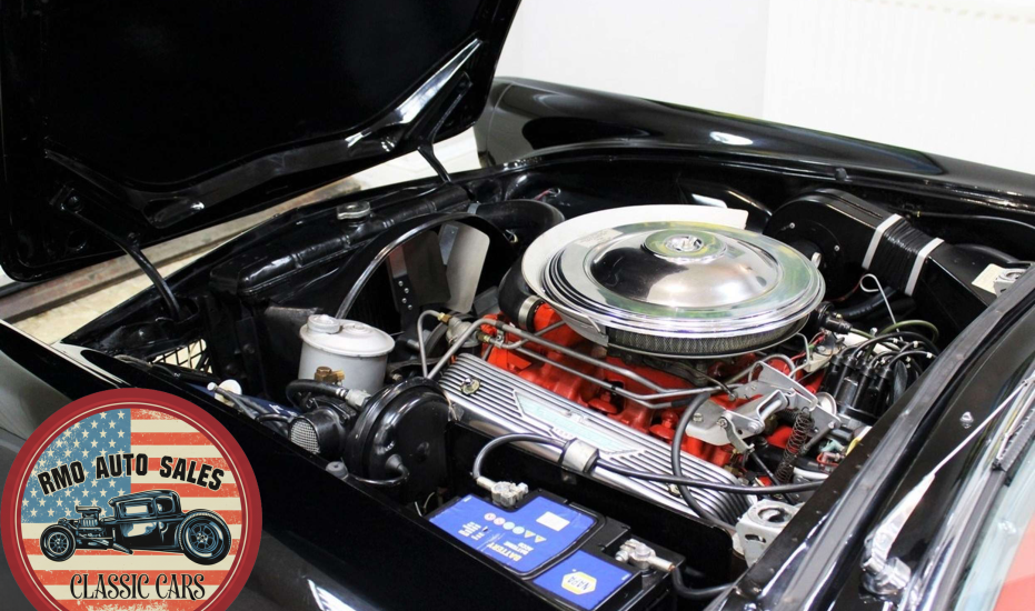 1956 Ford Thunderbird Convertible 292 V8 Auto. Black with red seats and interior and white panel inserts, black carpets and white roof. Porthole hardtop in matching black and chrome wire wheels with white-wall tyres.