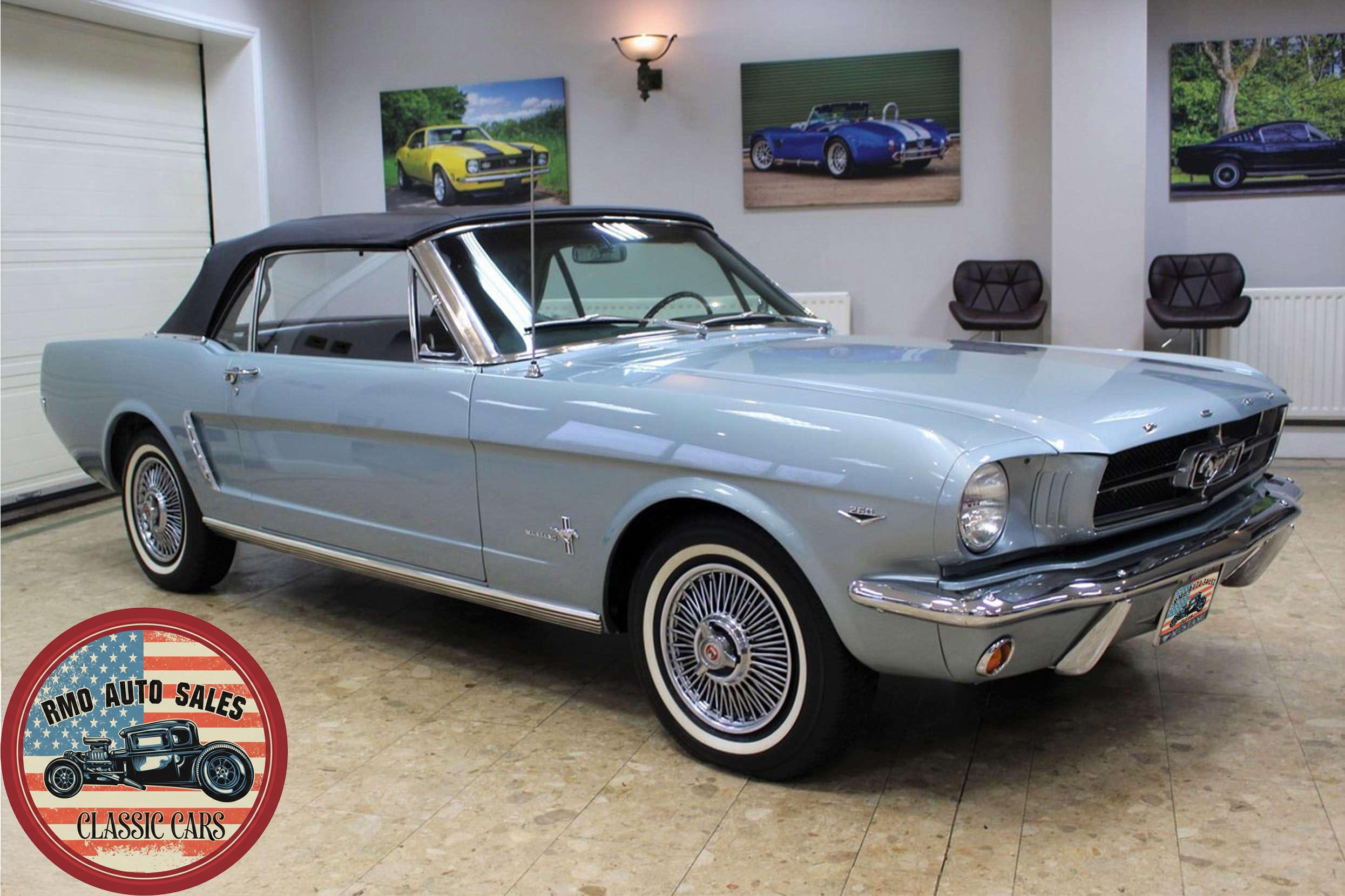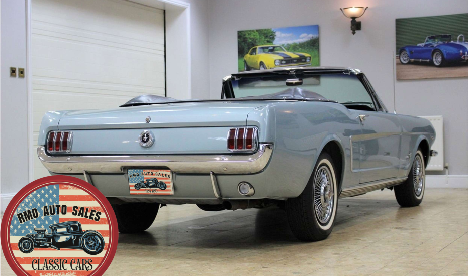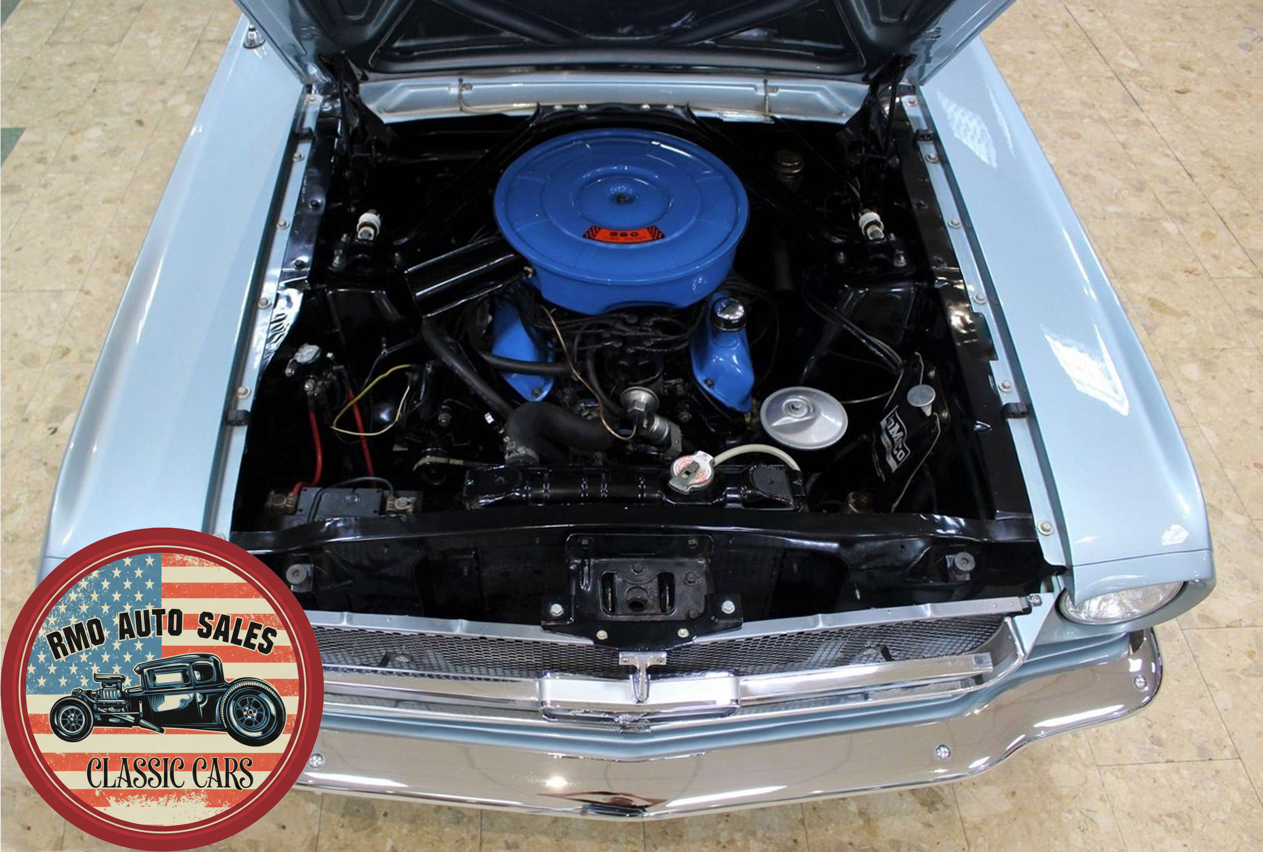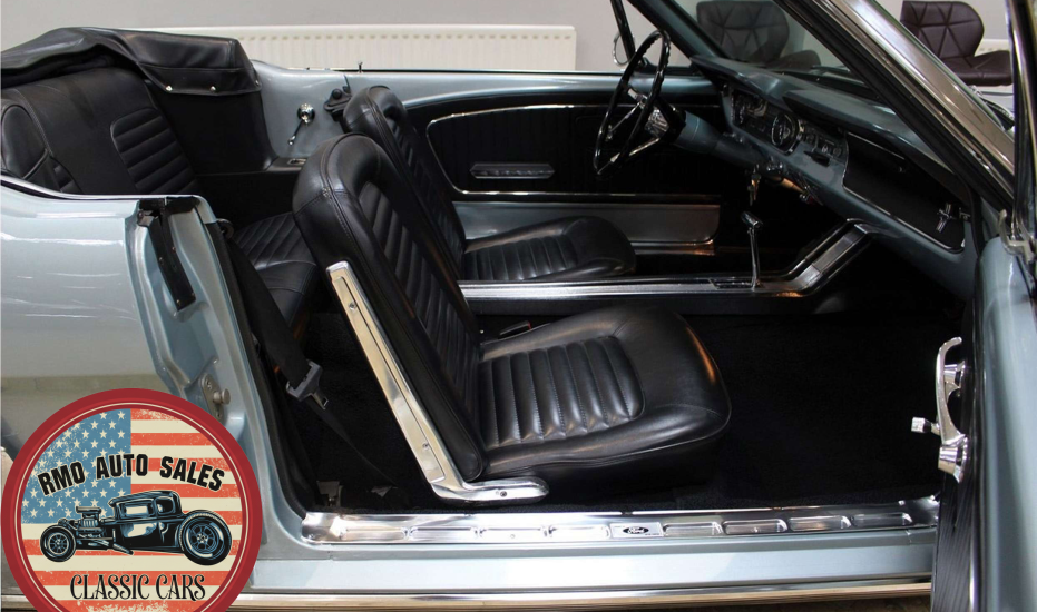 Mustang Convertible equipped with a 260 V8 engine, automatic transmission, and factory options including a power convertible top, center console, handbrake warning light, and power steering. Finished in rare Silver Smoke Grey with a renewed black vinyl interior and convertible top.