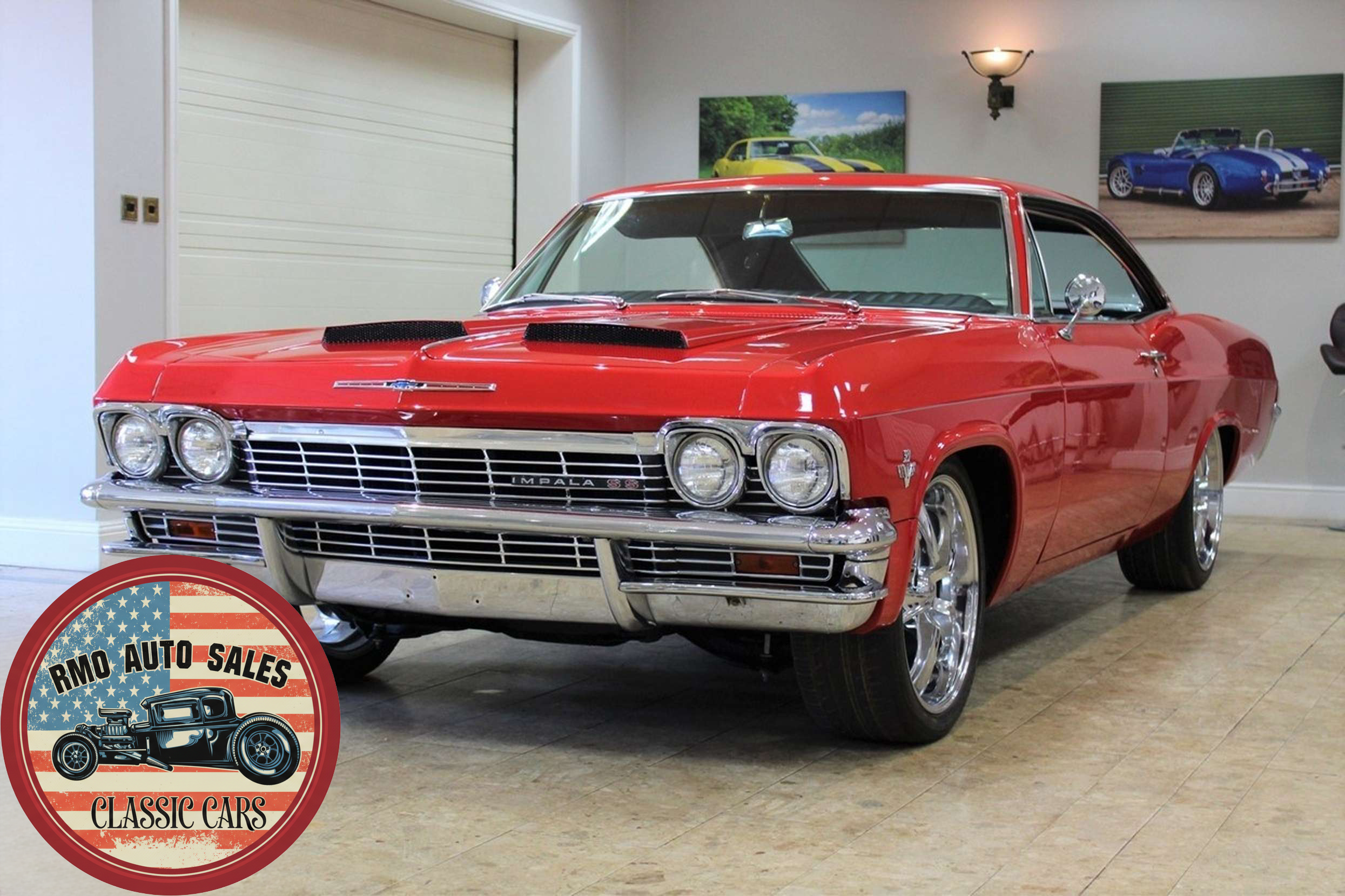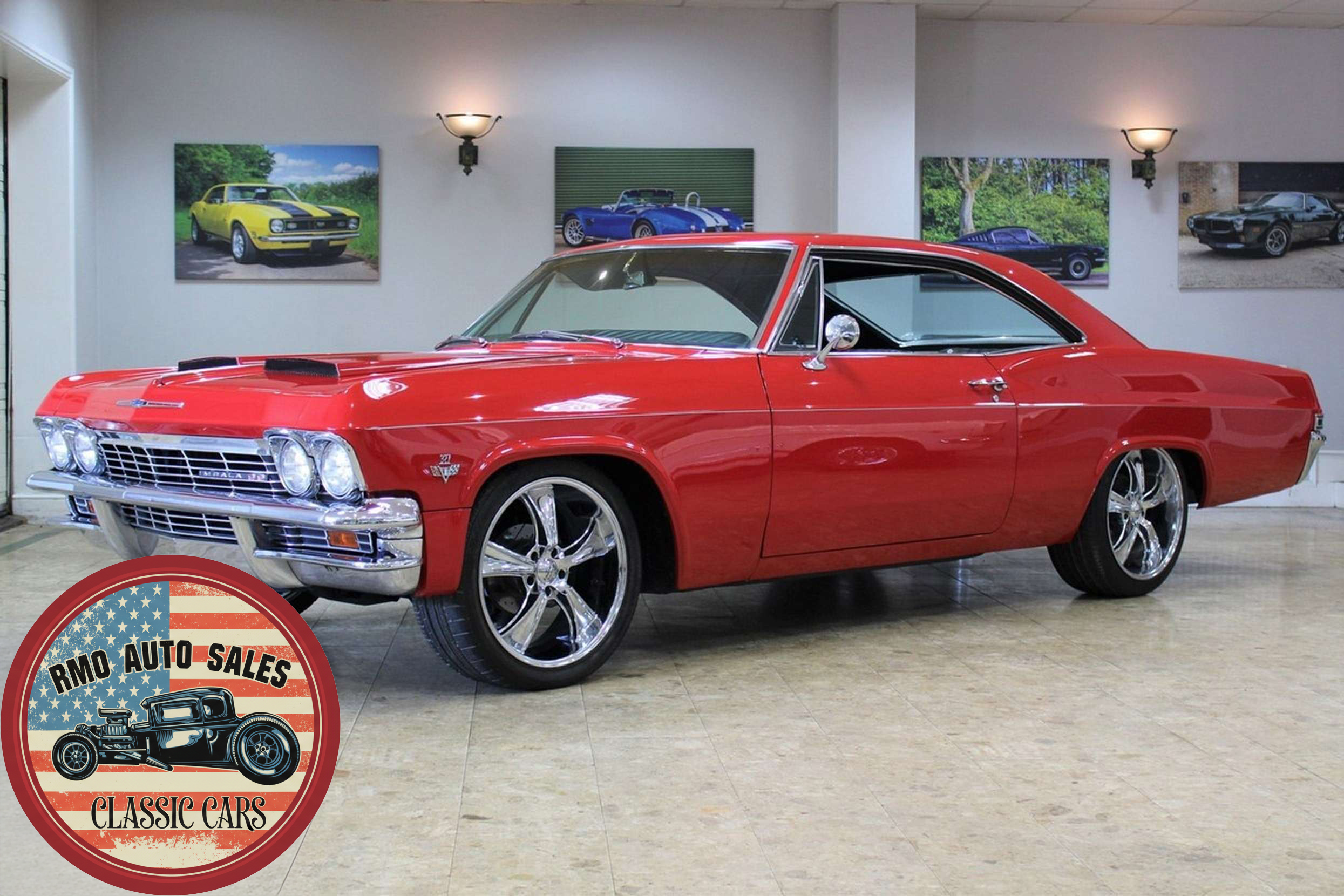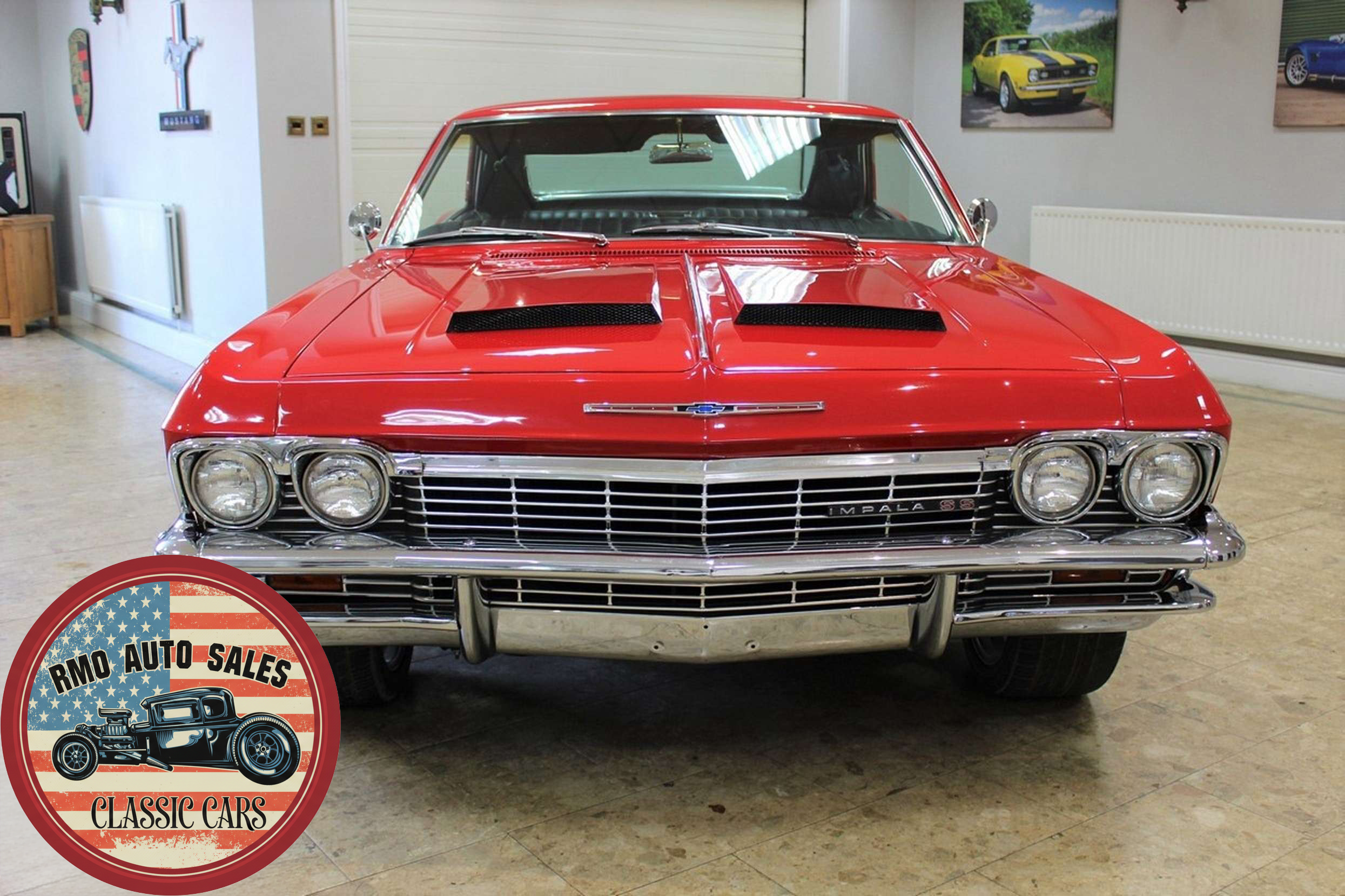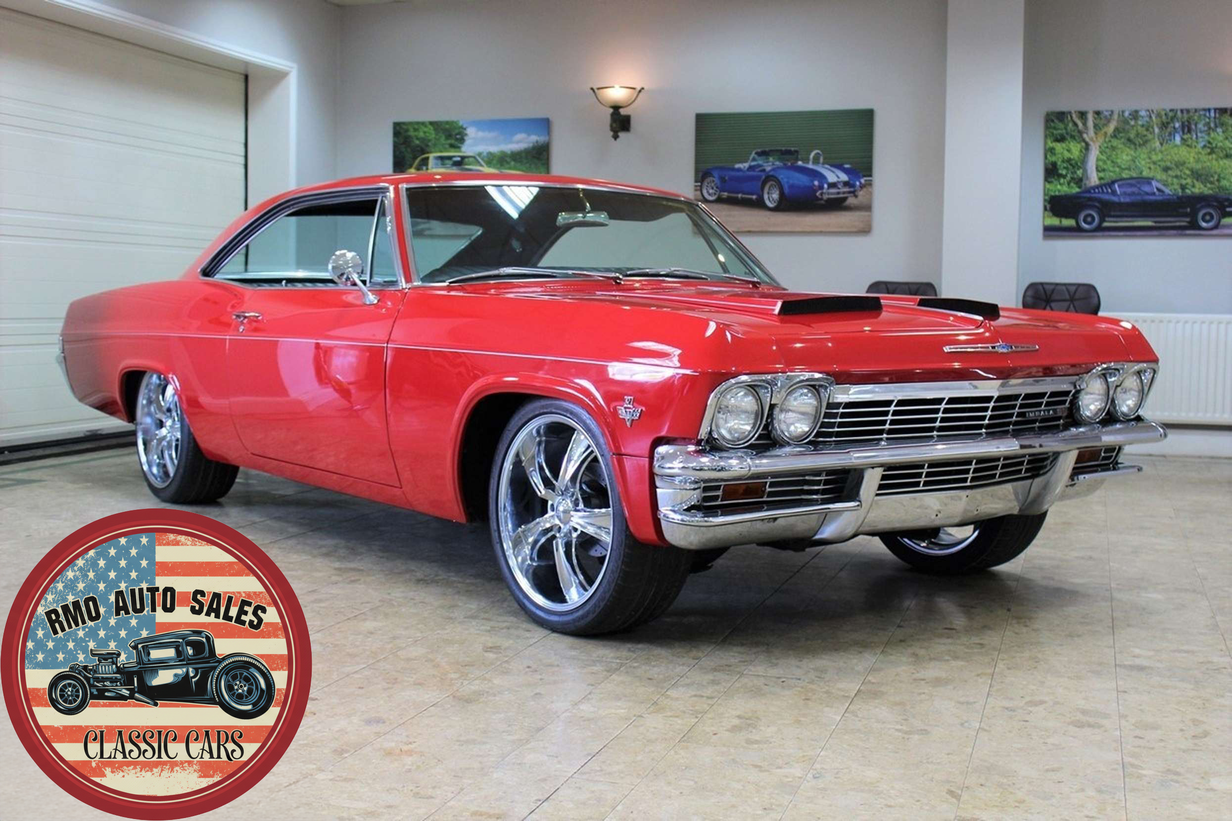 1965 Chevrolet Impala 2-door Pillarless Coupe. A genuine SS finished in Regal Red paintwork with black factory bucket seats and interior and original Chevrolet Radio. Fully restored to a high standard presenting with gleaming coachwork and immaculate factory trim. Equipped with Power steering, electric windows, 4-wheel Disc Brakes and 20-inch American Racing polished alloy wheels.